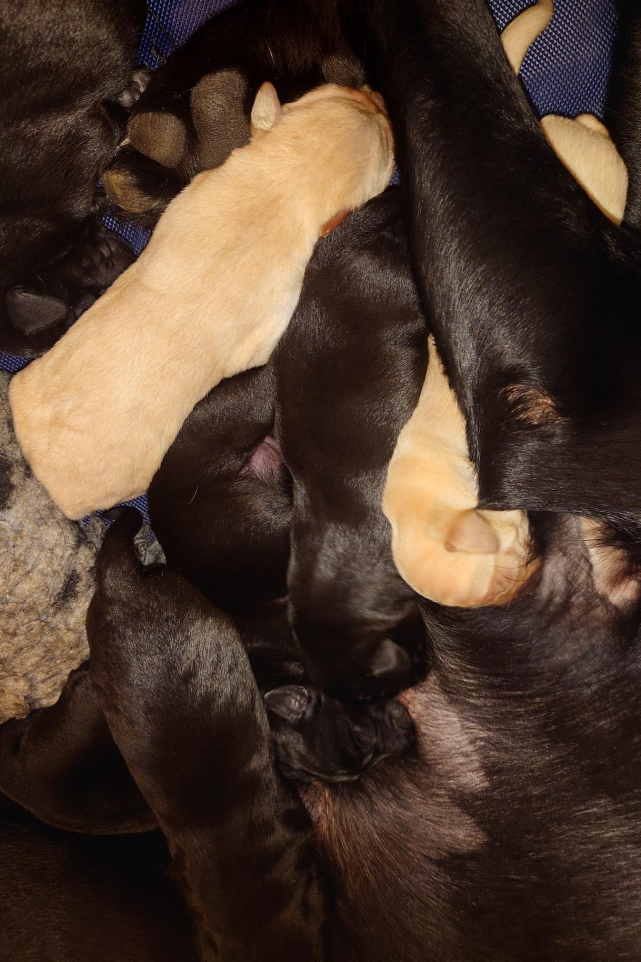 Valparna föddes den 1 feb-26 och det blev 7 st . 4 tikar, 2 gula och 2 svarta och 3 hanar. En svart hane är otingad och vid intresse hör av dig till lena@kenneltiograde.se för mer information om kuller . Valparna kommer att vara leveransklara den 29 mars